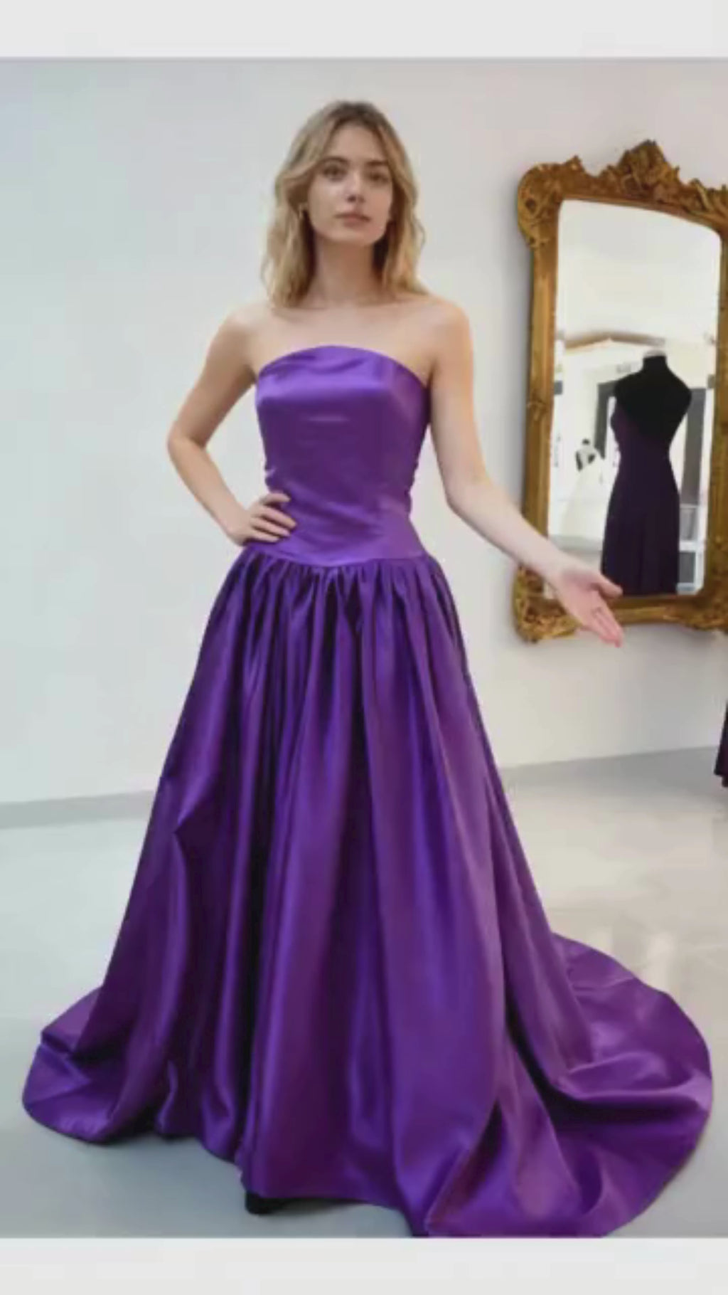 Un diseño que combina simplicidad y glamour . Su escote palabra de honor resalta el porte femenino, con talle largo hasta la cadera que marca muy bien la figura mientras la caída en raso fluido y la abertura en pierna le dan un toque fresco creando un efecto de elegancia natural en cada paso. Perfecto para una noche. de gala. ✨